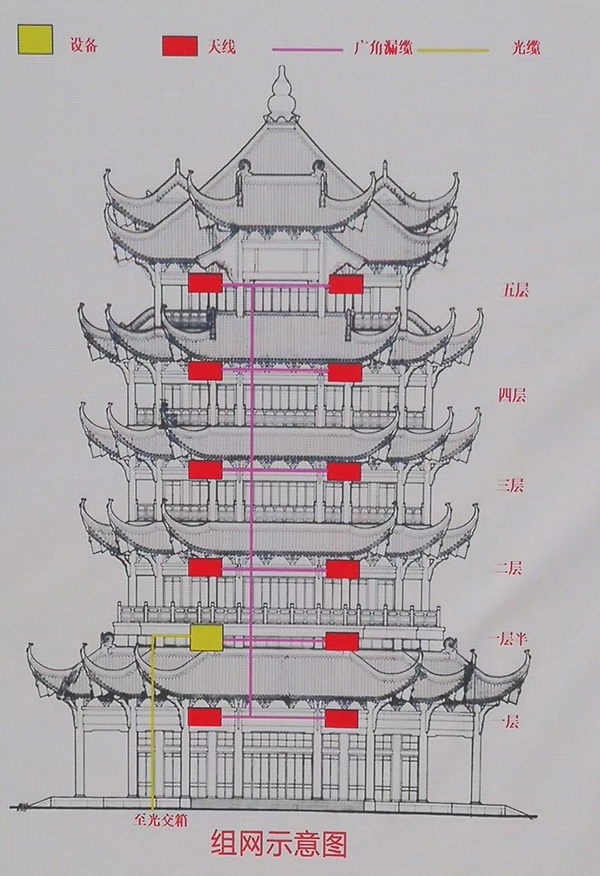 在黄鹤楼内,通信设备被藏在了各层楼天花板的“夹层”中,游客在外观上根本看不到。