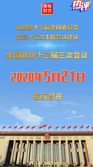 政协第十三届全国委员会第三十五次主席会议建议:全国政协十三届三次会议于2020年5月21日在北京召开。