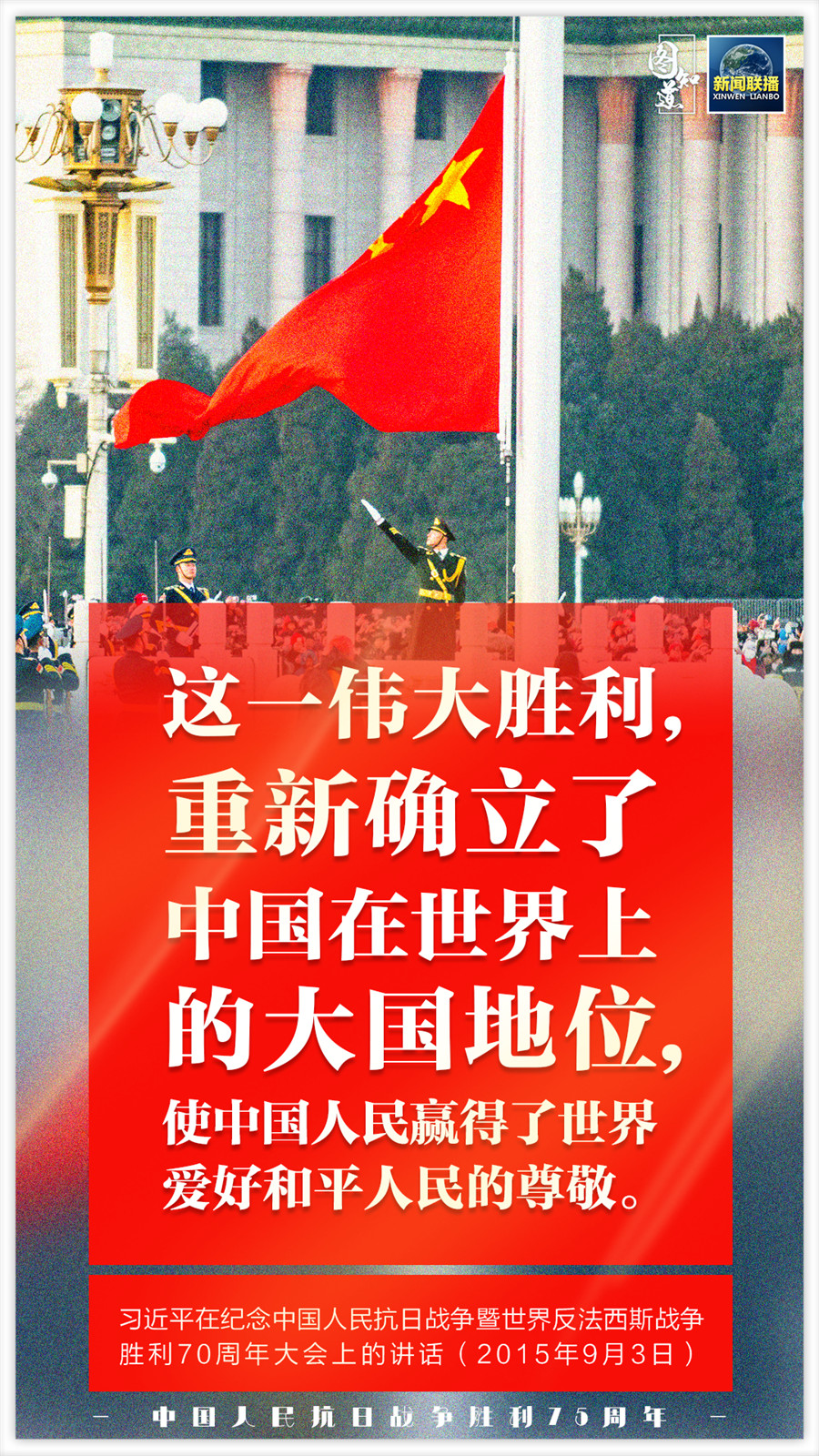 2020-09-03 11:40:31 来源:央视新闻客户端 责任编辑:陈玮 作者:今天(2020年9月3日)是中国人民抗日战争暨世界反法西斯战争胜利75周年纪念日。今天上午,习近平等党和国家领导人将同首都各界代表一起,在中国人民抗日战争纪念馆向抗战烈士敬献花篮。对于75年前的那场伟大胜利,总书记有过怎样的论述?一起看。