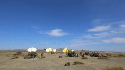 空降兵某旅组织跨昼夜武装集群跳伞训练。