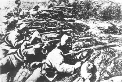 东北抗日联军战士在伏击敌人。(资料图) 几无任何自然屏障的淞沪平原 面对日军主力在战车、飞机配合下的疯狂进攻 中国军队只能硬扛