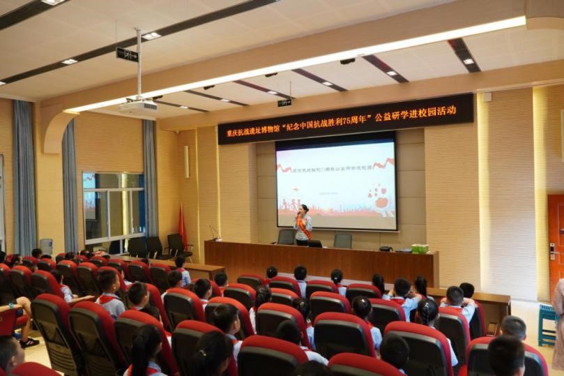 重庆抗战遗址博物馆开启“纪念中国抗战胜利75周年”公益研学进校园巡讲活动。紧紧围绕立德树人这一根本任务,为重庆主城3个区12所学校的4000余名中小学生提供文化公益服务。