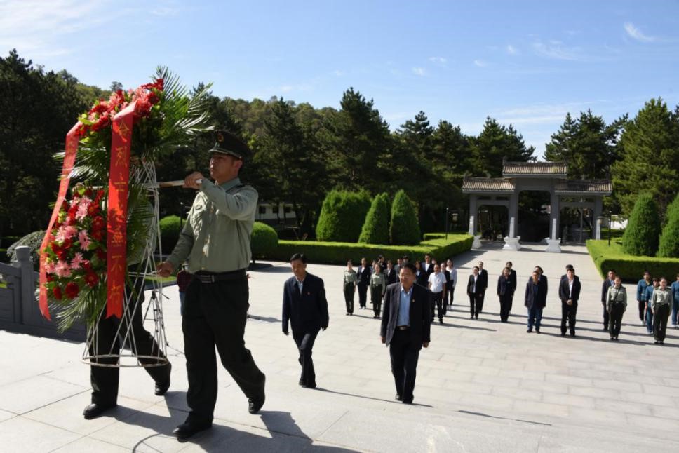 平西抗日战争纪念馆组织部分党政领导、烈属代表、团员青年及学生代表60余人同声高唱中华人民共和国国歌,并在平西抗日烈士纪念碑前默哀,全体人员有序向烈士敬献鲜花、瞻仰纪念碑,表达崇敬之情。