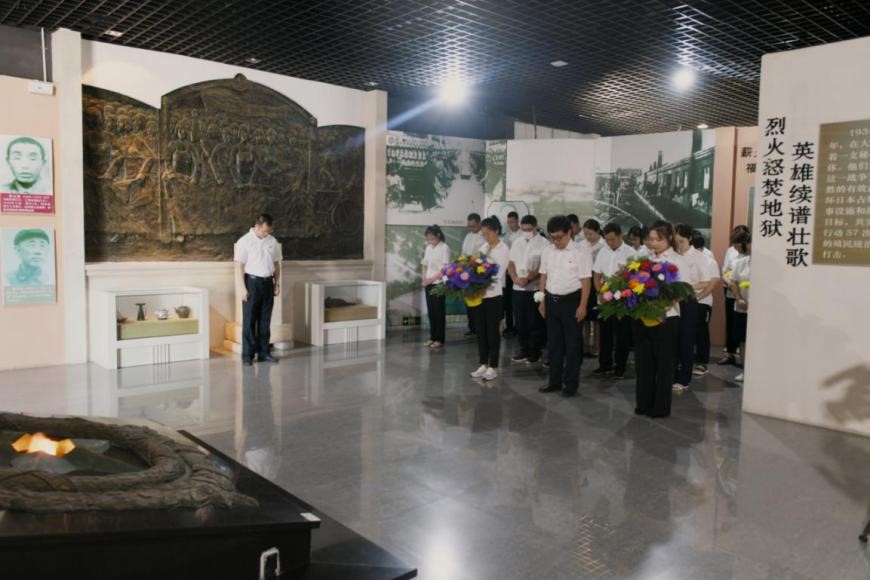 冀鲁豫边区革命根据地旧址纪念馆组织全体干部职工在冀鲁豫边区抗战史实展馆汉白玉碑前向抗战英烈敬献花篮、鞠躬致敬,以此来缅怀抗战英烈。
