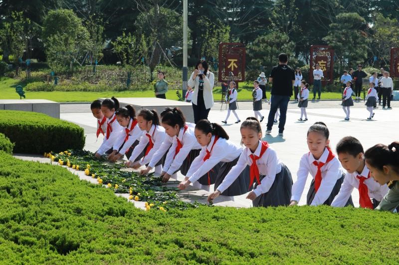沈阳“九一八”历史博物馆及沈阳抗战联线成员单位共同开展系列纪念仪式活动。学生代表在沈阳二战盟军战俘营陈列馆广场声情并茂的演绎了抗战英雄情景剧,朗诵了抗战诗篇,并集体向抗战英烈默哀、敬献菊花。同时,沈阳“九一八”历史博物馆还在在活动当日推出了“铭记历史守望和平”开学第一课——流动博物馆进校园和儿童体验馆研学之旅。