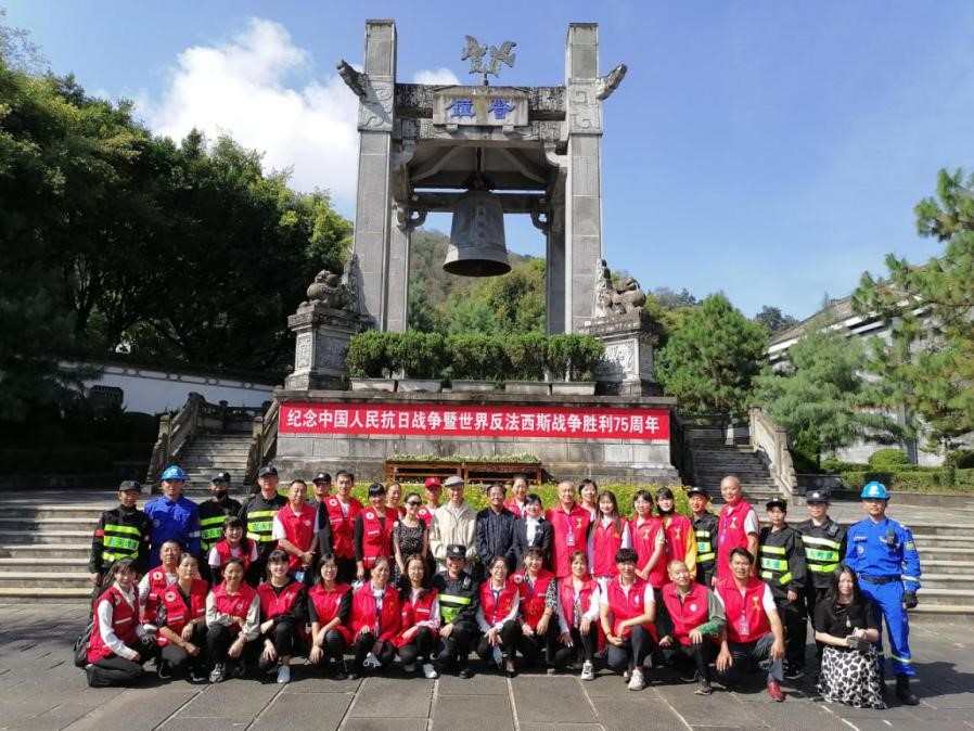 滇西抗战纪念馆在警钟广场举行了隆重的纪念仪式,原全国人大常委会副委员长、国防委员会副主席张治中将军之孙张皓霆先生、孙媳陈金秀女士;民国元老李根源之孙李成兴先生;滇西抗战纪念馆志愿服务队、蓝天救援队部分代表以及滇西抗战纪念馆全体干部职工共计150余人参加了纪念仪式。