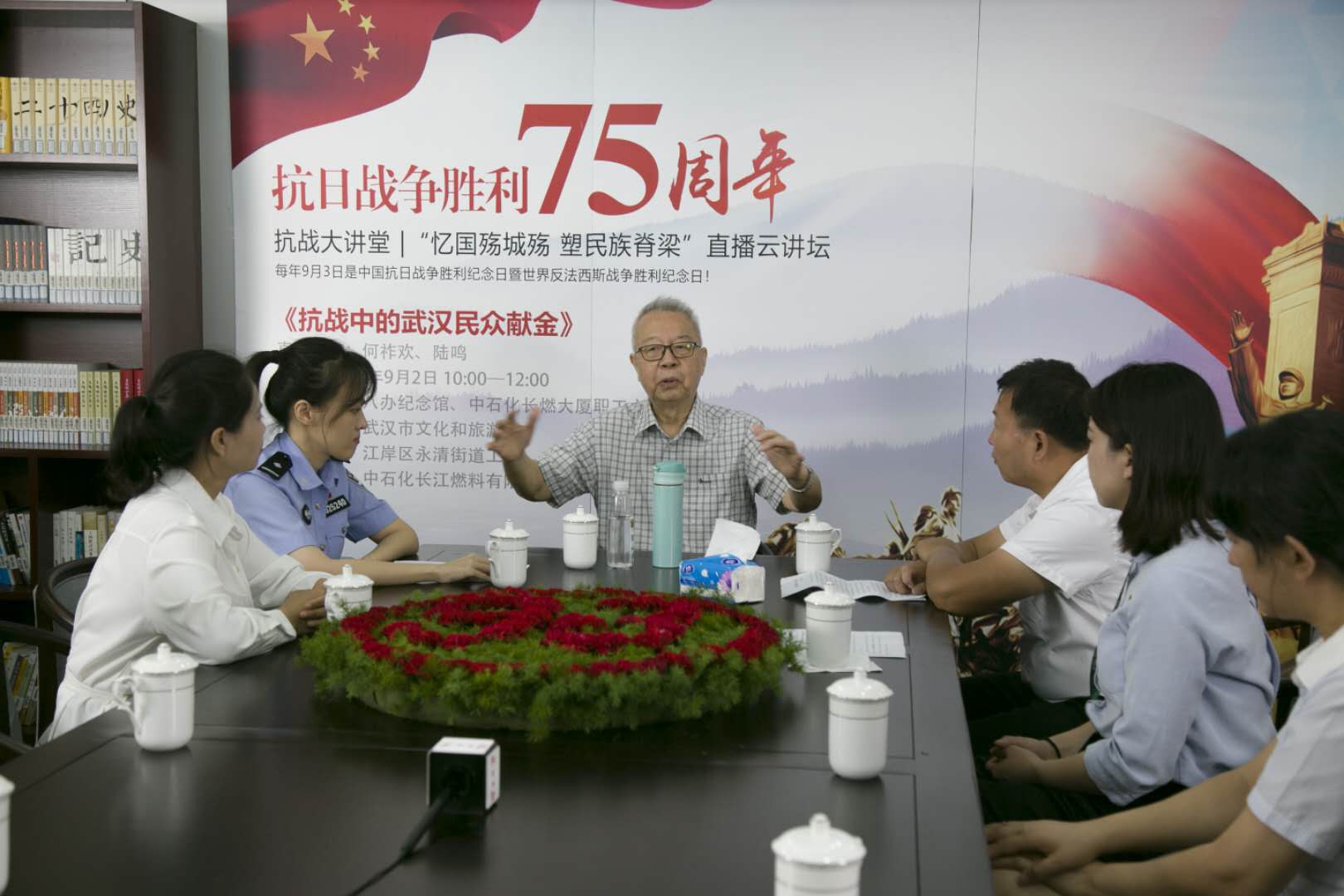 八路军武汉办事处旧址纪念馆邀请武汉文化名人何祚欢做客直播间,讲述了1938年周恩来、郭沫若等人号召的武汉市民支援抗战的献金运动故事,深切地回忆了在祖国生死存亡之际,中国人民誓死捍卫祖国的爱国情怀和“天下兴亡、匹夫有责”的民族大义,并组织20余名党员及全体干部职工举行了庄严纪念仪式。
