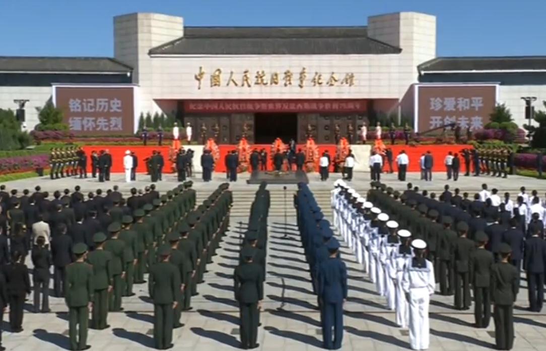 9月3日上午10时,中共中央总书记、国家主席习近平等党和国家领导人出席了在中国人民抗日战争纪念馆举行的纪念中国人民抗日战争暨世界反法西斯战争胜利75周年向抗战烈士敬献花篮仪式。在雄壮嘹亮的国歌声中,习近平总书记同首都各界代表向在中国人民抗日战争中英勇牺牲的革命烈士敬献花篮。