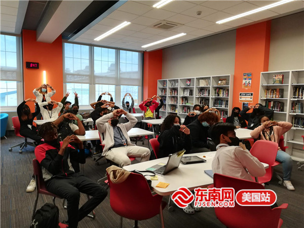 林登高中学生用心形手势表达感谢。(林登高中供图) |