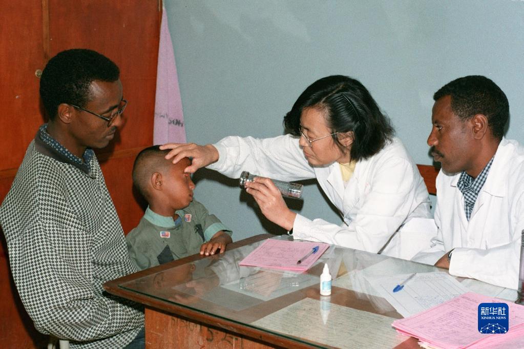 1998年,中国医疗队队长曹晓燕和当地医生一起给眼疾患儿检查。由河南省派出的中国第9批援埃塞医疗队于1996年8月赴埃塞俄比亚工作,他们以崇高的医德、精湛的医术赢得了当地人民的赞誉。新华社记者 陈才林 摄 50年来,中国人民持续奋斗,谱写立己达人、兼善天下的时代篇章—— 全面建成小康社会,显著缩小世界贫困人口版图,减贫人口占同期全球减贫人口70%以上;连续多年对世界经济增长的平均贡献率超过30%,成为世界经济增长的重要引擎……创造自身发展奇迹的同时,中国也在影响和改变世界,让更多发展中国家重拾信心,探寻适合本国国情的现代化路径。