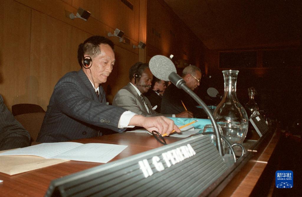 2020年4月18日,在位于纽约的联合国总部,菌草技术发明人、福建农林大学研究员林占熺(前排中)在“菌草技术:‘一带一路’倡议对促进落实联合国2030年可持续发展议程的实质性贡献”专题研讨会上发言。菌草技术是来自中国福建省的一项技术。中国研究人员发现,一些草本植物可替代木头用于培育菌类,这就是菌草。菌草可被用于生产多种食品、饲料、肥料以及生物质能源等,还可用于生态环境保护和治理。这项技术投入少,见效快,效益高。菌草已经扎根100多个国家,“一带一路”沿线的不少发展中国家朋友称它是来自中国的“扶贫草”,有人干脆称之为“中国草”。新华社记者 李木子 摄 作为最大发展中国家,中国在联合国合法席位的恢复,让联合国的普遍性、代表性和权威性切实增强,让世界和平正义的力量空前壮大。自此,联合国宪章宗旨和原则才有了真正实现的可能。 因公道正义而胜,为和平发展而来。 50年里,中国领导人多次走上联合国舞台。从“三个世界”划分到建立国际政治经济新秩序,从建设和谐世界到构建新型国际关系、构建人类命运共同体……每一历史关头,中国都以独特的东方智慧为推动世界和平与发展贡献建设性方案。 50年来,中国同世界安危共担,为维护世界和平与安全注入稳定力量—— 积极参与朝鲜半岛核、伊朗核、阿富汗、缅甸、巴以等重大地区热点问题政治解决;努力维护安理会权威和团结,支持联合国依据授权开展斡旋;积极参与国际军控与裁军进程,加入《不扩散核武器条约》等20多个国际军控条约和机制…… 自1990年以来,中国已向近30项联合国维和行动派出维和人员5万余人次,是联合国维和行动第二大出资国和安理会五个常任理事国中派出维和人员最多的国家。