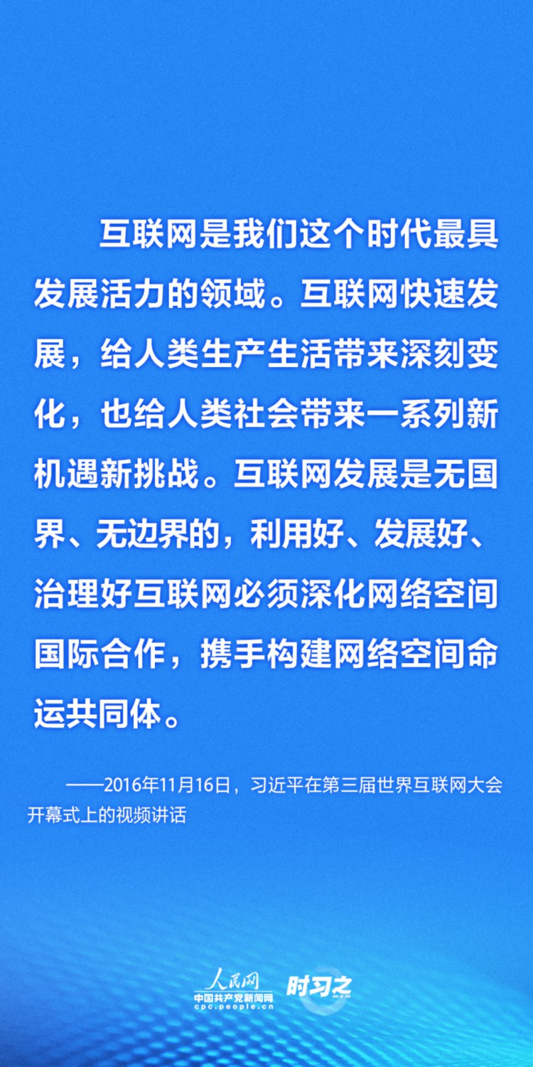 “网络空间关乎人类命运,网络空间未来应由世界各国共同开创。”长期以来,以习近平同志为核心的党中央坚持以人民为中心的发展思想,高度重视网络强国建设,并多次发表重要论述及重要讲话,提出构建网络空间命运共同体的重要理念,展示了中国对网络空间人类未来发展的前瞻性思考,让互联网更好造福世界各国人民。