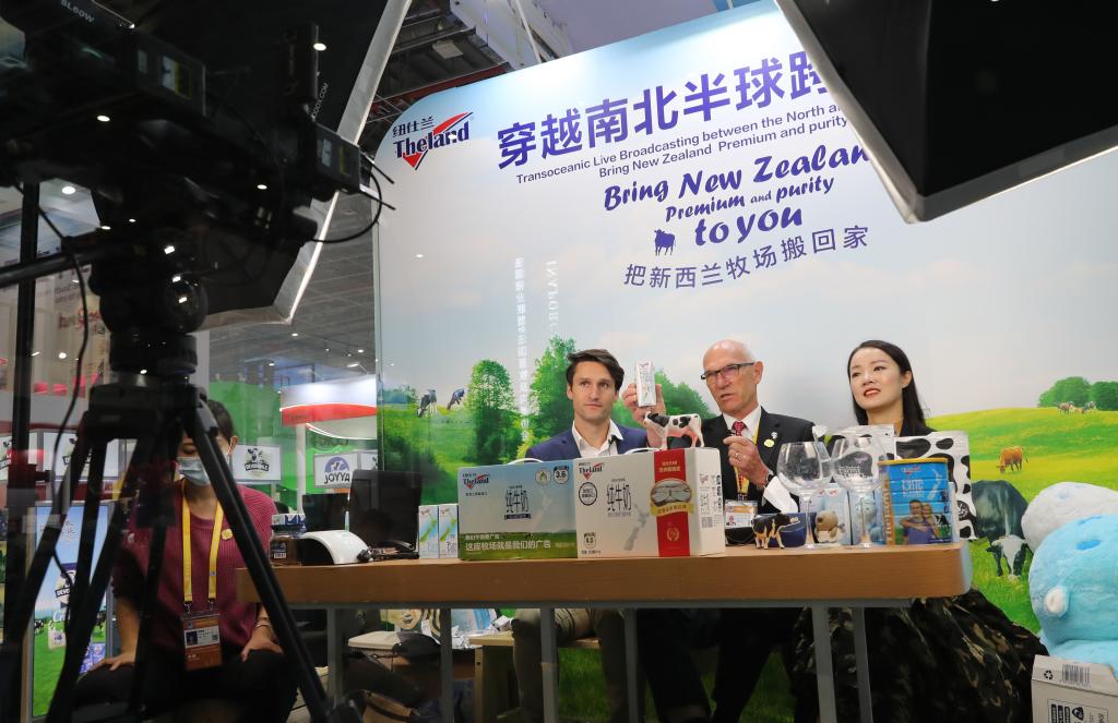 新西兰纽仕兰乳业有限公司执行总裁罗伊·范登克(中)在第三届进博会展台上搭建的网络直播间出镜带货。新华社记者方喆 摄 “第六届进博会在继续沿用通关便利、市场准入等19项支持政策基础上,今年海关又新增一项支持举措,扩大参展展品范围,在评估确认风险可控的前提下,允许无动植物疫情流行国家(地区)未获检疫准入的动植物产品、食品,经特许审批后入境参展。”上海市政府副秘书长、进博会城市服务保障领导小组办公室主任章雄表示。 如何进一步推动规则、规制、管理、标准等制度型开放?进博会也是一个观察窗口。进博会期间举行的虹桥国际经济论坛将围绕“国际公共产品”功能定位,持续发布世界开放报告和世界开放指数。专业观众在进博会上,可以感受扩大开放的“虹桥智慧”。 商务部副部长盛秋平说,将与各方密切配合,全力以赴打造一届高标准、高质量、高水平的全球经贸盛会,为与会各方提供更多市场机遇、投资机遇、增长机遇 |