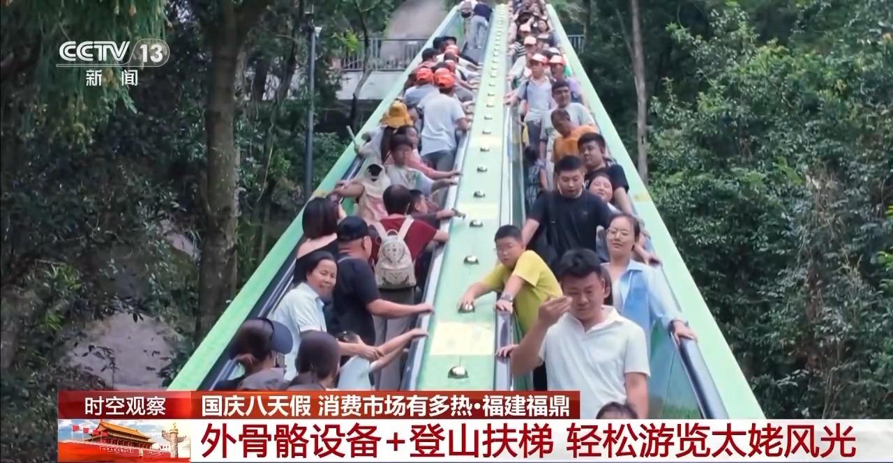 今年国庆假期叠加中秋,总共八天假。面对全年文旅消费最旺的节点之一,国家统计局表示,假期消费有望继续扩容提质。这个国庆中秋假期,哪些领域成为新的消费增长点?在政策红利叠加下,这个假期买什么更划算?国庆八天假,消费市场有多热?又有了哪些新变化? 爬山配上外骨骼 价格怎样?体验如何? 假日消费说到底是服务消费。国庆中秋假期哪些领域成为新的消费增长点?先看看各大景区给大家提供了哪些更新的服务。 第一个关键词:外骨骼。金秋十月,山河锦绣,正是畅游山水的好时节。爬山时配上外骨骼是什么体验?租用外骨骼价格贵不贵?戳视频,跟着记者一起去福建福鼎的太姥山世界地质公园,一起来体验一下吧。 在太姥山的热门景点之一——九鲤湖,从2日开始,景区将会迎来客流的高峰期,截至中午1时,景区的入园人数已经超过了1.1万人次,是平日同时段客流量的3.5倍。工作人员告诉记者,从早上的7时开始,就会有游客开始陆续入园。到中午12时左右,是游客入园的高峰期。景区内的“一线天”,是太姥山最热门的打卡点之一。“一线天”是一处非常具有特色的花岗岩洞穴,这里最窄的地方还不到30厘米,每次只能允许一位游客贴着石壁通行,从早上9点半开始,这里就排起了长队。