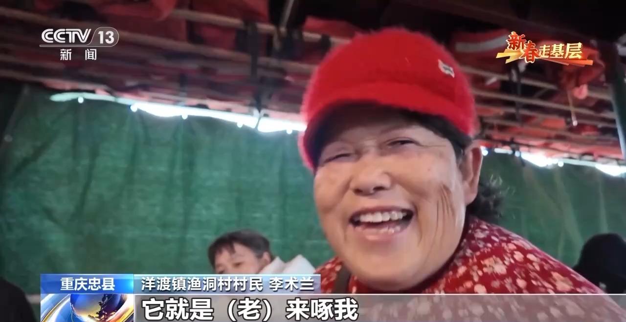 洋渡镇渔洞村村民 李术兰:我怎么会舍不得,它天天啄我。
