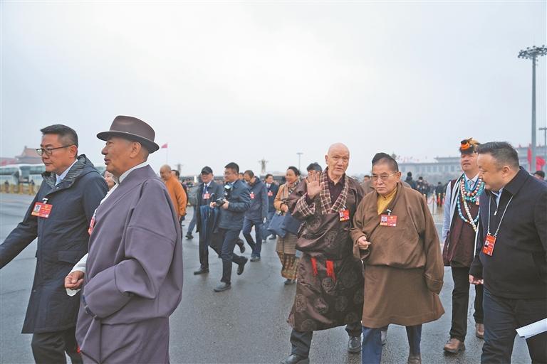 住藏全国政协委员正在步入会场。记者 旦增旺姆 陶玥 琅青措 摄