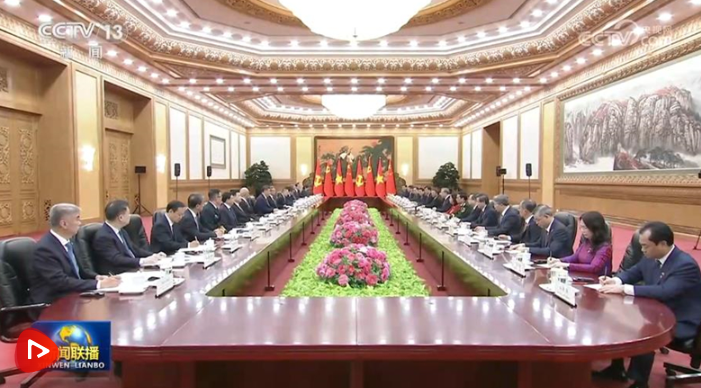 习近平再次祝贺苏林当选越南国家主席。习近平指出,你当选越南国家主席后第一时间到访中国,体现了你对发展中越关系的高度重视。相信在以苏林同志为首的越共中央坚强领导下,越南必将坚定走好社会主义道路,朝着建党建国“两个一百年”奋斗目标砥砺奋进。无论国际形势如何变化,中方始终将越南作为周边外交优先方向,愿同越方秉持初心、赓续友谊,团结协作、相互支持,继续按照“六个更”总体目标,高质量推进全面战略合作,加快构建更高水平具有战略意义的中越命运共同体,为推动构建人类命运共同体作出更大贡献。