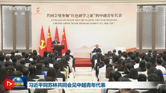 习近平发表讲话,表示去年我和苏林总书记一道启动“红色研学之旅”项目,一年来,两国青年共同探寻中越友好的红色基因,感受中国式现代化的万千气象,在中国各地留下许多互学互鉴、相知相亲的生动故事。不久前,我收到越南河内国家大学外语附中等学校的同学们用中文写来的信,分享了参加“红色研学之旅”的深刻感悟,立志做中越友谊的传承者和传播者,我感到很欣慰。