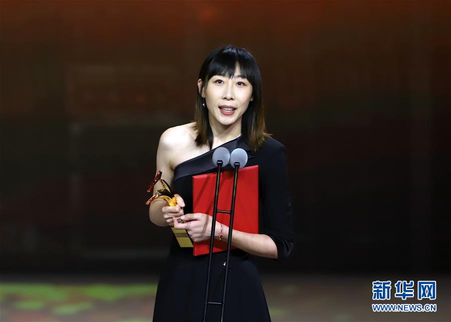 9月10日,凭借《半个喜剧》获得最佳女演员奖的任素汐在颁奖典礼上发表获奖感言。 新华社记者 雒圆 摄