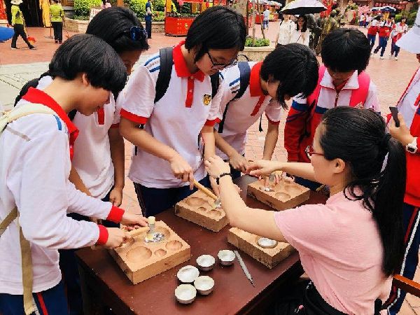 除此之外,银敲锡雕工作坊还挖掘同安本地文化,在澳门世界闽南文化节上展出具有地方特色的锡雕纪念品,并开始进学校、入社区,逐渐在新一代年轻人心中种下种子。