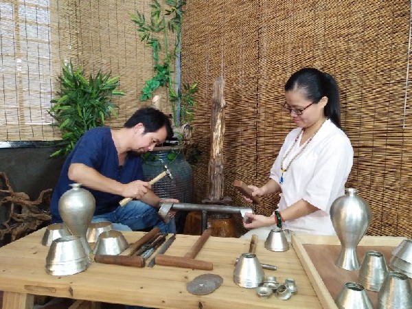 同安锡雕进学校、入社区。 仍在寻觅传承人 银敲锡雕工作坊还开始挖掘同安本地文化,在澳门世界闽南文化节上展出具有地方特色的锡雕纪念品《浑仪》《宋江阵》等,惊艳全场。“以前人们不认识锡雕,这是我们面临的最大难题,现在同安锡雕作品在各种展会上‘复活’,逐渐打响了市场知名度和认可度。”庄亚新说,凭借在传承锡雕中的不断创新,他们的作品《长寿瓶》获得中国工艺美术“百花奖”铜奖,《富贵吉祥》获得“中华工艺优秀作品奖”银奖,《团结》获金凤凰创新产品设计大赛银奖。 这些努力也得到了更多的认可与支持。2013年,同安锡雕入选厦门市第四批市级非物质文化遗产名录,2017年1月又入选省级非物质文化遗产代表性项目名录拓展名录。除了荣誉之外,他们还受邀参加各种类型的会议、展览。“这些平台意味着我们有机会与各地业者交流碰撞。”郑天泗说。 更让郑天泗高兴的是,同安锡雕在当地教育局、文化馆的支持下,开始进学校、入社区,让孩子们有机会接触和体验锡雕制作过程。“过去一年,我们先后到4所学校,还有一些公共场所,做了十几场宣传推广活动,整体反响都很不错。”他说,不少孩子把制作的锡器带回家。在他看来,这些举措,让非遗在新一代年轻人心中种下了一颗种子。 不过,眼下后继无人的问题仍横亘在夫妇俩的心头。“锡雕制作技艺繁杂,每一件作品的每一个配件都需要经过十几道工序纯手工制作而成,需要有一点耐得住寂寞、静下心来钻研的工匠精神。”郑天泗说,虽然工作坊有几名工人,但只能做简单的加工,目前只有一名跟着他们学习了五六年的徒弟作为传承人在培养。他坦言,希望能够再找几名有雕塑基础、愿意投身锡雕技艺的徒弟,促进锡雕再提升。 “我们在2014年就获民政局批准成立厦门市同安传统锡雕技艺传习中心,但由于种种原因,现在场地较小。”郑天泗说,今年将筹备一个相对规模化的传习中心,面对社会、学校,面向对工艺美术比较有兴趣的人开放,通过这个平台找到志同道合的人,倾囊相授。(福建日报记者 潘抒捷 通讯员 杨心亮) |
