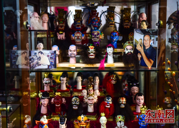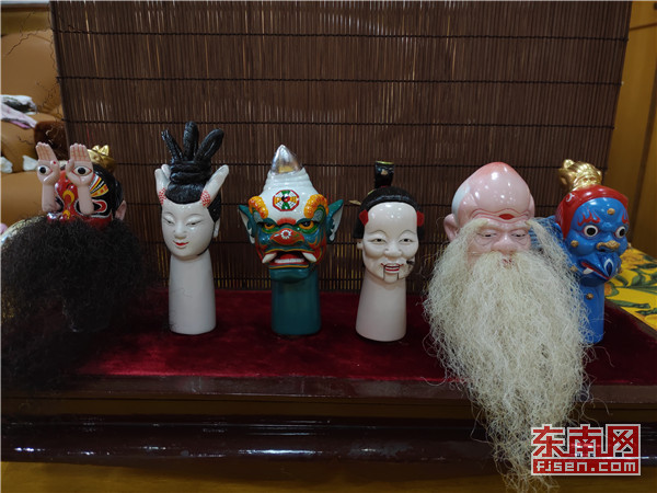 黄家陈列了许多黄义罗的代表作品。东南网记者 林婕 摄 而黄紫燕和黄雪玲的父亲黄义罗,14岁起便跟随江加走之子江朝铉学艺,是国家级非物质文化遗产“江加走木偶头”雕刻的代表性传承人。黄义罗的木偶头创作突破了传统的形态,众多木偶形象如程咬金、雷公雷母、金陵十二钗等在黄义罗的手中都有别于传统。如雷公双耳后长出了翅膀,雷母脸上有闪电纹路,这都是黄义罗在传承传统的基础上进行的艺术创新。