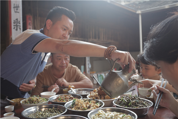 在屏南,酿酒的人家需要把酿酒时蒸熟的糯米,分一部分给街坊邻里吃。林浩宁 摄 就这样,在从小吃着糯米饭、闻着红曲香、看着大人制曲酿酒的耳濡目染下,吴善寨也慢慢学会了酿酒,并与黄酒朝夕相伴了30余年。30年间,让吴善寨对酿酒过程中的诸多细枝末节都如数家珍。他与酒,像是一对相识多年的故交,彼此相知相惜;酒于他,更是一份深藏于心底的情愫,冥冥中召唤着他做点什么,将其传承发扬下去。 2014年,在上海从事了多年物流生意的吴善寨回到家乡,开始自己酿酒,并创立了自己的品牌,想要把家乡的黄酒推向市场。谈起当时的情景,吴善寨坦言,也经历了一段摸索期,“2016、2017这两年,为了市场推广跑了很多地方,‘学费’也交了不下百万,效果却不甚理想……”终于,在这两年摸索出了一套与当地农户进行合作的合作社运营模式。吴善寨本人也于2017年,被评为非遗代表性传承人。 虽身为省级非遗项目,但红曲黄酒酿造技艺的传承现状却不容乐观。“现在村内学习这门技艺的年轻人,其实并不是特别多。”吴善寨介绍起了北墘黄酒的现状,由于酿酒的过程,尤其是对温度、火候的把控,需要丰富的经验方能掌握,年轻人学习的不多。 此外,长久以来人们对于黄酒的刻板印象、受众面有限以及宣传力度不足等问题,也让屏南北墘黄酒始终没能走出去,处于一种“酒香也怕巷子深”的处境。 以酒为媒迎宾客 这一切在2016年的冬至时节,开始有了转机。冬至,对于常年酒香四溢的北墘村来说,可谓是一年中最为重要的节气,意味着冬酿的开始。在冬至这一天,村民们一早便会去村内的古井挑水,辅以优质糯米和精制加工好的红曲,将心中对酒的那一份情感一同存放进坛内。