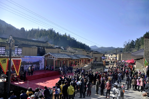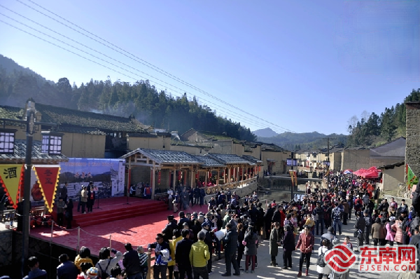 2016年,第一届黄酒民俗节文化节开幕式现场。东南网记者 叶伏国 摄 而2016年的冬至,山水如画的北墘村内,百米长的老街张灯结彩,舞龙舞狮的队伍锣鼓喧天,第一届黄酒民俗节文化节正在此缓缓拉开帷幕,屏南县收获了由中国民间文艺家协会颁发的“中国红曲·黄酒文化之乡”称号。与此同时,祭祀酒神、诵读祭文、祈求福祉等一系列带有当地特色的民俗活动,和着浓浓的酒香一路蔓延开来。截止目前,黄酒民俗节文化节已成功举办5届,为当地吸引了不少人气,也成为了北墘村黄酒转型升级的缩影。 近年来,北墘村以“酒”为媒,大力推动黄酒一二三产业融合发展,盘活村内资源,逐步打造出具有一定影响力的屏南黄酒文化品牌。2019年初,北墘黄酒文化旅游景区更是被认定为国家3A级景区。