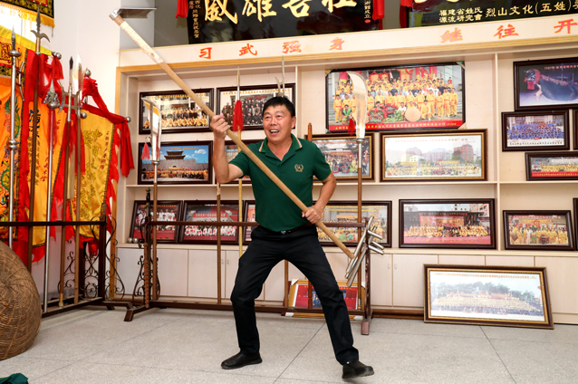 卢天补展示狮阵部分动作。东南网记者陈培源 摄 “狮阵是祖祖辈辈留下的非物质文化遗产,也是村民们业余生活中重要的一部分,我们要世世代代坚持不懈地传承下去。”据卢天补介绍,近代以来,卢厝狮阵历经多次开馆授艺。自上世纪70年代,武馆复建以来,由卢厝村民传承至今。 现在的卢厝狮阵武术馆由村中企业资助运行,是狮阵重要的公益传习场所。武术馆中有百余名中青年,他们多为兼职的卢厝村民。由于整个“狮阵”的排练演习需要多人参与,且对场地要求较高,因此要组织一场大规模的演习并非易事。虽然困难重重,但在卢天补和其他武师的号召下,大家都十分配合,坚持操练。如今的狮阵队伍正不断壮大,不变的仍是村民眼中的“神圣感”。“我们每次外出表演前依照习俗,要先到宫庙中求一道符贴在狮头上保平安,十分郑重。” 这一由整个村庄共同传承的非物质文化遗产,在村民的世代坚持和当地政府部门的重视下,得到了很好的传承。“在我孩童时期,村中舞狮氛围已十分浓烈,大人们几乎人人都掌握着舞狮技艺,我自小便十分向往。”卢天补告诉记者,在过去,需要16岁以上才能学习狮阵表演,年龄不够的他只能通过旁听偷偷学师,回家后再自行练习。