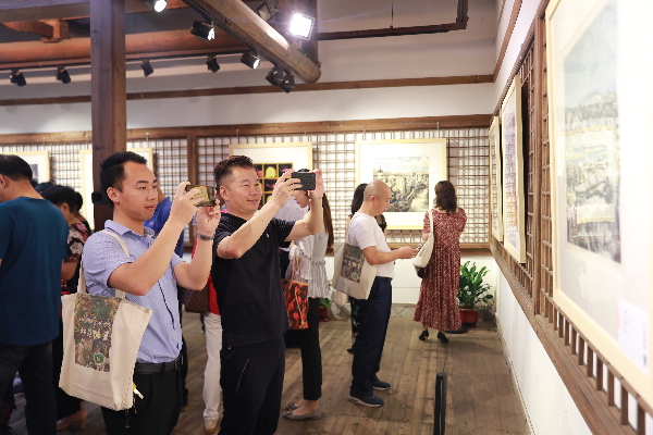 蔡丽作品《开心时刻》 受访者供图 颜色在有色纸上叠加会产生意想不到的效果,又有无限的可能,充满不确定性,达不到自己想要的色彩效果,就要洗掉重来,为了一个满意的色彩效果调试几次的颜色是创作中的常事。蔡丽对颜色的苛求在画室里是出了名的。她说:“色彩的偏差会让最后的成画效果和表达的创作意图都出现偏差。”画友们常常在画室里打趣她,“这次又准备花几天时间啊?”蔡丽一边回应伙伴的玩笑,一边继续试色,实在达不到预想的效果时,蔡丽只能选择先搁置两天。画作上有几个颜色,就需要刻印几次,每一次刻印都要进行许多次颜色调试,总想着要那个最满意的色彩效果。就这样反反复复,一副作品完成往往要花费蔡丽一两个月的时间。 蔡丽指着自己挂在展厅的几幅作品说道:“这几幅创作时间都达一个月以上,面积最大的一幅画花了我两个月。” 这么多年来,凭借着对家乡的热爱,对版画创作的热爱,蔡丽走过松溪的许多地方,并用手上的刻刀一刀刀在画中呈现出来,其作品刀法轻松活泼、内容扎根生活、构思立意新颖、画面简洁明快,在业内获得了一定的高度。她的作品入选第十一、十二届全国美展;入选第十五、十六、十七、十九届全国版画作品展;入选第六届全国体育美展;入选上海世博会中国美术作品展;入选第四届全国青年美展,并且在这个展览上斩获最高奖项;入选第五届北京国际美术双年展等全国性的专业美展。2018年5月6日,蔡丽的作品《乡村之十三》与丈夫兰坤发的《城雕-红色的记忆》以及另一位版画创作者陈维星的《都市·第一缕阳光》一同被中国美术馆收藏。蔡丽形容最初入选国展的感觉是:“像打了鸡血一样兴奋,满满都是创作的动力。” 松溪版画(晋京)作品巡展吸引了许多版画爱好者 李典利 摄 多方聚力 热情倾注非遗传承 刀木之音,跃然画中,松溪风采,画中绽放。二十多年来,松溪版画在艺术创作中稳步前进,从最开始的兴趣班发展成为闽北大地上的璀璨明珠。蔡丽认为“这离不开当地党委、政府的支持和大批爱好者的推动。” 在地方政府推动下,松溪县先后成立民间版画协会、松溪县版画院;并与2001年举办首届松溪版画展暨全国版画之乡作品邀请展。松溪县还出台了扶持版画产业发展的优惠政策,设立500万元的版画产业发展基金,用于松溪版画的宣传参展、人才培养、作品创作、生产销售等事业发展和产业扶持项目。如今,松溪版画不仅是收藏品,还作为室内装饰用品走进了千家万户。 另一方面,松溪版画创作者们正形成一个团体。“我们常以团体的形式出现在全国各类美展上。”蔡丽解释道“版画作为艺术品有赖于作者知名度,市场极为有限。以团体的形式出现,更有利于打响品牌。”近年来,他们积极参展办展打响知名度,“不论是参展获奖,还是提高版画的市场价值,都能够在一定程度上激发作者创作积极性,巩固甚至扩大创作群体,很好的促进了版画的传承和发展。” 她说。 在版画艺术传承上,蔡丽带领着团队做了许多尝试。他们在县版画院开展零基础免费体验版画活动,为版画爱好者免费提供材料、免费教学;每年开展版画骨干作者培训活动,凝聚骨干队伍创作活力;定期给教育版画社团进行培训,再由社团的老师传授给他们的学生。 现在,除了日常创作和参展,蔡丽还经常带着团队走进校园进行版画教学工作。蔡丽告诉我们早在1999年她就开始在县实验小学进行版画班授课,版画进课堂让松溪的孩子们从小就开始接触版画,孩子们从吹塑纸、PVC板的创作到高年级的套色版画,由浅入深认识版画创作。“让学生去接触它,了解它,版画其实不难的。”蔡丽说。 薪火相承,成燎原之势。如今,松溪县拥有2位中国美术家协会会员、17位福建省美术家协会会员,共有成人骨干作者100多人,创作1000多幅作品。“现在越来越多的年轻版画创作者加入到我们版画创作队伍。版画未来发展一定会越来越好。”蔡丽坚定地说。