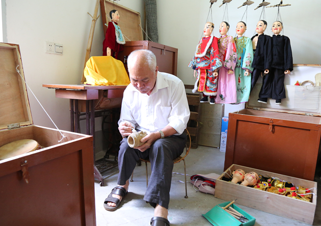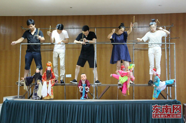 新生代傀儡戏演员日常训练。 东南网记者 李凌生 摄 实际上,在众多徒弟之中,叶曼云并非唯一的年轻传人。因为年岁的关系,王荣昌现在只是偶尔带班演出。在这不多的演出中,最得力的助手,要数王荣昌的儿子王炜元。 因为从小耳濡目染,王炜元对傀儡戏也有着浓厚的兴趣。但直到现在,他也只是一个兼职演员,“光靠这个不能养家,而且我的技术水平也还不够”。为了更好地学习木偶表演技艺,王炜元专门花一万多元买来一台摄像机,每次在父亲演出时就进行全程录制。几年下来,1T的硬盘已经占了大半的存储量。 在王炜元县城家中的阳台上,挂着一具父亲亲手制作的提线木偶。每日下班回家,摆弄、练习提线技艺是他最开心的时刻。“等我退休或者时机成熟,也会全身心投入木偶事业,毕竟这是几辈人共同的心血。”王炜元认真地说。 (东南网记者 李凌生 通讯员 林斯乾 邓婕婕) |