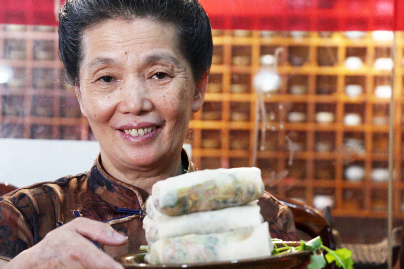 舌尖上最深刻的记忆,无疑就是“妈妈的味道”。在厦门同安,一张薄饼、十几种食材,卷起的便是一种难以割舍的“家乡味”。 同安吃薄饼习俗迄今已有400多年的历史。2017年5月,吴招治薄饼制作技艺被列入福建省非物质文化遗产代表性项目,“薄饼嫂”吴招治成为该技艺省级非遗代表性传承人。几十年来,她守护传承着这份家乡的滋味,让海内外的游子回到故乡,能从卷卷薄饼香气中,唤醒记忆中一段段关于家的温暖时光。 “同安薄饼”省级非遗代表性传承人吴招治。 东南网记者 颜财斌 摄 坚持老配方 融入十几种食材 薄饼是厦门同安传统小吃,相传为明朝重臣蔡复一夫人李氏(厦门同安马巷人)做薄饼助夫,随后成为蔡氏家族代代传家的一宝,薄饼的做法也在同安民间广为效仿,并延传至今。 吴招治是土生土长的同安人,从小被蔡家收养,8岁开始随祖父蔡体学习制作薄饼手艺。几十年来,因为薄饼味道好且待人亲切,她被很多人亲切地唤作“薄饼嫂”。