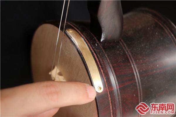 莆仙传统乐器独特琴头款式——虾尾头。东南网记者 杨超斌 摄 陈氏家族传统十音乐器制作技艺代代传承,分枝开业。他们不忘初心,坚守传统,在沿袭古法的基础上传承和发展着祖辈留下来的技艺。陈金福告诉记者,新中国成立后,陈氏家族第四代传承人陈满堂、陈如玉推出简化版十音乐器,降低成本、物美价廉、推动乐器制品大众化,传统制作技艺和造型传承至今。现在的制作工序包括选料、画模板、锯型、夹筒、伡筒、制杆、刻花、磨光打蜡、组装、试音等。 同样的,陈金福也继承了先辈们不断探索创新的精神,做“守艺人”,更做“创艺人”。音色是一把乐器的重要特点,是乐器品质的关键,而莆仙传统乐器的音腔主要由发音板决定,其材料密度、软硬程度都会影响到发音的音色,陈金福在经过长期摸索试验后,选取了延展性好、不易开裂的河南兰考泡桐板为发音板,进一步增强音质以及提高音色的变化空间。 除了在选材上“斤斤计较”,随着现代工艺技术的发展,陈金福也不断改良莆仙传统乐器的制作工艺,更加先进的制作理念和技术带来了更加精美的乐器。陈金福在胡类乐器的琴筒上方拉弦处加上了铜片,并加大了琴杆的弧度,减少琴弓对琴筒的磨损,此外,他更是推陈出新,加入了移动式筒轴,方便演奏者调音。今年,他被莆田市文化与旅游局评为莆仙传统乐器制作技艺非遗代表性传承人。 子承父业,赤子拾遗