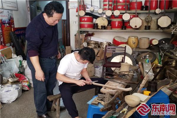 陈金福父子制作乐器。东南网记者 梁丽萍 摄