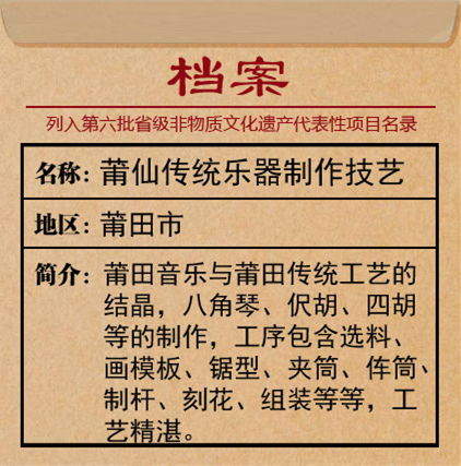莆仙传统乐器制作。东南网出品 莆仙传统乐器制作技艺是莆田音乐与莆田传统工艺的结晶,体现了莆田人民的智慧,工艺精湛。今年10月,莆仙传统乐器制作技艺第七代传承人陈篙松在自家作坊“金福乐器”店对面筹办起了一个传统乐器展厅,供路人、学生、音乐爱好者等参观游览,以主动“走出去”的姿态让更多人认识和了解莆仙传统器乐。 记者一行来到了“金福乐器”店。走进作坊,映入眼帘的是八角琴、伬胡等各式莆仙特色传统乐器以及各种制作工具,乱中有序,古色古香。就在这里,我们见到了莆仙传统乐器制作技艺第六代、第七代传承人陈金福和他的儿子陈篙松。 守艺有成,创艺有方