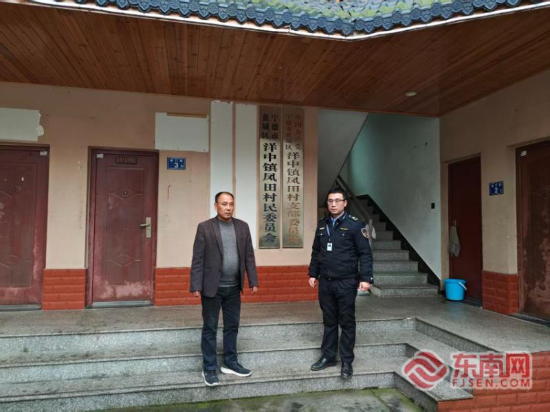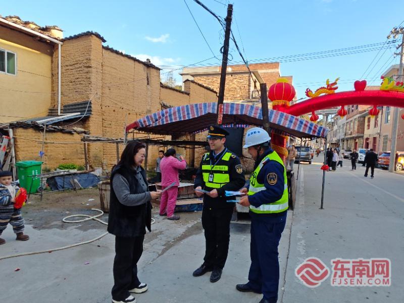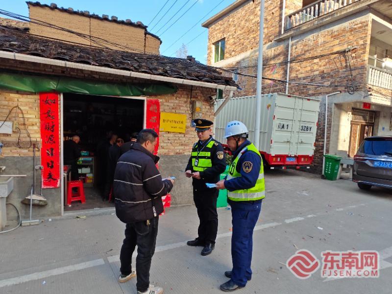 执法人员在曹炉村发放宣传单。宁德高速公路行政执法支队供图