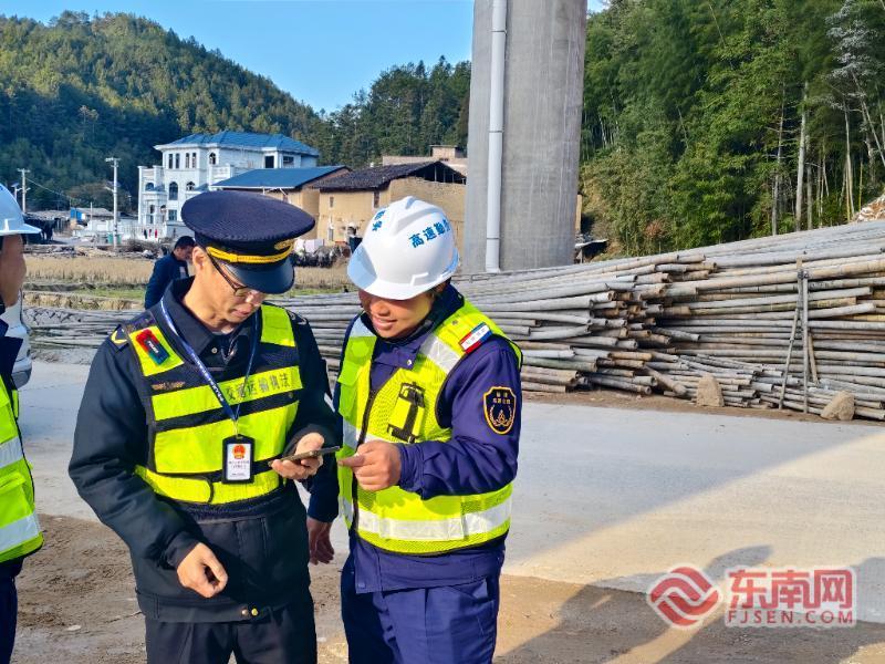 与高速路勤确认桥下空间隐患地点。宁德高速公路行政执法支队供图