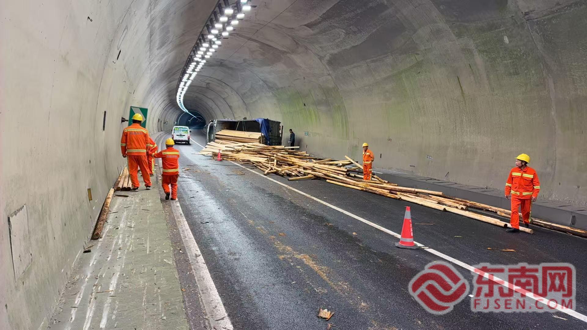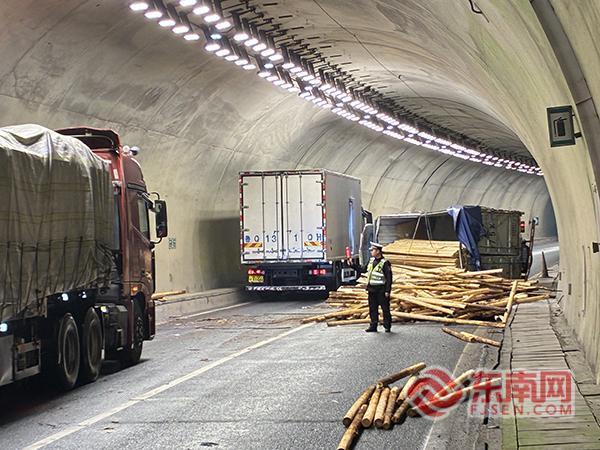 东南网4月7日讯(通讯员 余慈松 刘晓涌)4月3日凌晨0时许,一辆满载木材的货车在石壁炉隧道内发生侧翻,大量木材散落一地,现场情况紧急。宁德高速执法周宁中队接到通知后,迅速响应,第一时间赶赴现场开展救援处置工作。