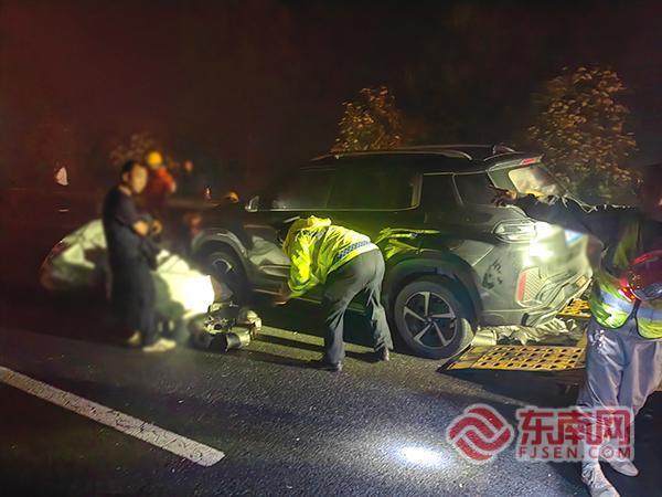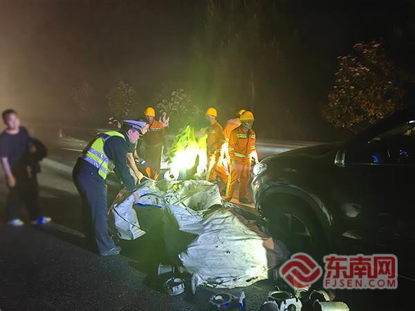 事故处理。宁德高速执法支队供图 事发路段为多雾路段,凌晨时段路面能见度低,易引发二次事故。接警后,宁德高速执法支队周宁中队立即赶赴现场开展处置。 抵达现场后,执法人员协助高速交警摆放反光锥、引导车流减速慢行,做好交通管制与安全布控,同步联合养护部门全力清理路面散落货物。执法人员与养护人员以人工搬运方式,将路面水泵铸件逐一清理转移。