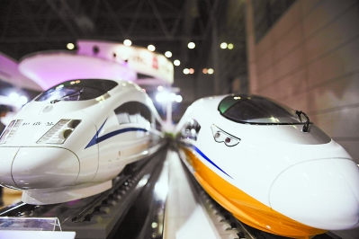 中国中车展示区内,CRH380BL(左)及高速综合检测车模型。