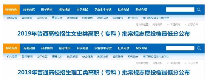 今日 福建省教育考试院公布了 高职(专科)批常规志愿投档最低分