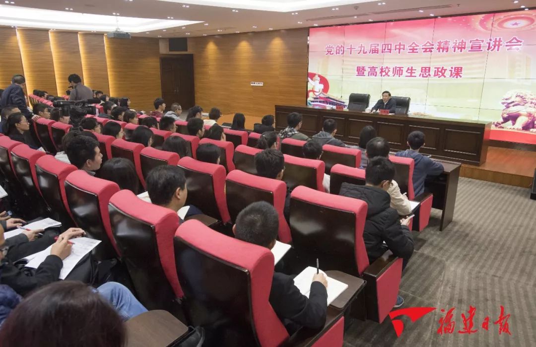 5日中共福建省委十届九次全会刚刚闭幕6日省委书记于伟国就来到福州大学宣讲党的十九届四中全会精神为青年学生上思政课