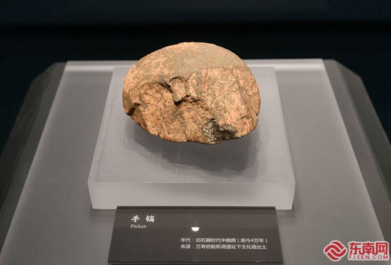 古人类使用的手镐(福建日报记者 游庆辉 摄) 万寿岩遗址最重要的文物发现——石铺地面,就是诞生在这个时期,距今约3.7万年。 船帆洞遗址揭露的大面积人工石铺地面在我国尚属首次,当时这一发现可是震惊了考古界。石铺地面的面积约120平方米,平面呈不规则的“凸”字形,这些石料全都是大小不一、磨圆度中等的灰岩角砾,其中还夹杂着一些河滩砾石。由于溶洞本身并不产生河滩砾石,它的出现,说明是当时人类携带进洞穴的。 此外,洞穴一侧的“U”字形排水沟槽清晰可见,从痕迹上明显可看出经过人工修凿加工。原来,船帆洞是个熔岩洞,洞里的钟乳石不断滴水,长此以往,地面变得潮湿,难以居住。石铺地面是当时的人类为了改善自身的居住条件和生活环境有意铺设的,是人类建筑的萌芽形态,充分显示了远古人类改造自然的聪明才智。 按照近20万年时间序列来推断,万寿岩遗址或许不仅仅只有4个时期人类生活的痕迹,漫长的岁月里究竟发生了哪些惊心动魄、生死存亡的故事?我们不得而知,有待一支科学、强大的考古力量去发掘。 知来处,明去处。在几十万年的进化学习过程中,闽人的祖先从茹毛饮血慢慢学会了打猎、用火,到后来学会烧制器具、种植水稻……一步一步,进而才有了今日文明之光。 |