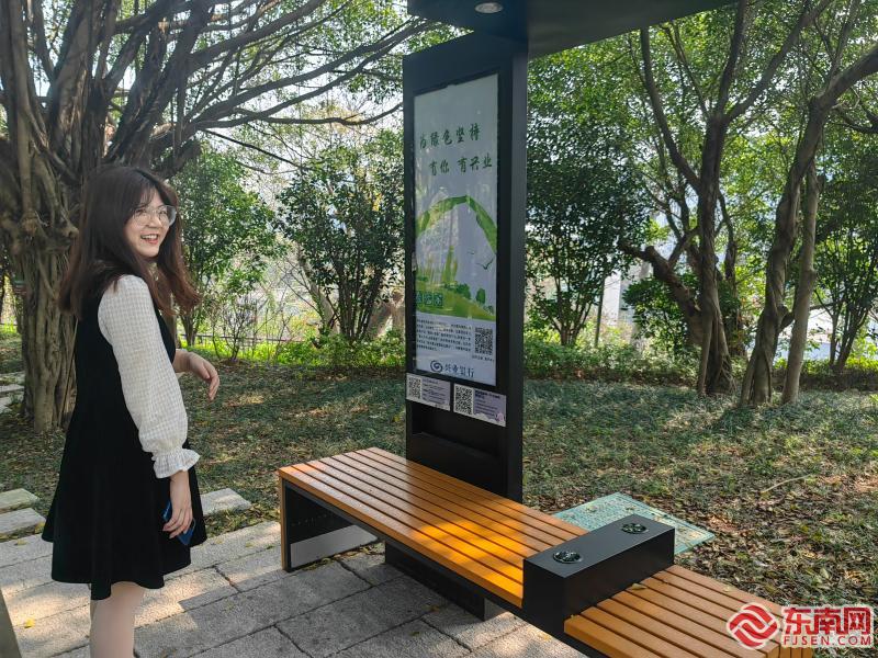 福山郊野公园里的智能座椅 东南网记者 冯川叶 摄 在公园里,记者体验了一把“智能”的趣味性。在智慧步道上游览时,游客们在智能打卡桩上进行运动打卡活动,一公里就可以打卡一次,不仅能积攒绿色能量,而且系统会自动开展运动排行榜。不少运动爱好者在排行榜上广交益友,相约而行。 当你体验了智慧步道后,还可以到公园的智能座椅上坐一坐。在步道进行打卡游览运动后,便可以获得启动智能座椅的绿色能量。智能座椅不仅拥有播放音乐这样让人舒缓身心的功能,而且能够提供WIFI和手机充电服务,让游客摆脱手机没电,流量不够的烦恼。最让人耳目一新的是智能座椅的驱蚊功能。开启座椅后,座椅自动开启驱蚊功能,解决了公园蚊虫多,游客容易被蚊虫叮咬的市场痛点。 刘良芳告诉记者,去年6月份,公园和兴业银行进行合作,在公园里设置了智慧打卡桩、智能座椅等,这些设施的升级都大大提升了舒适度和便利性,受到了游客们的好评。 |