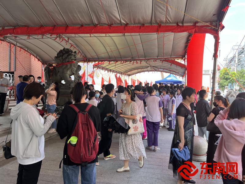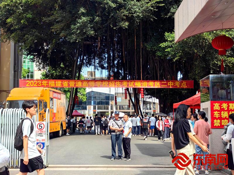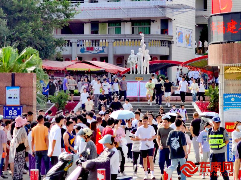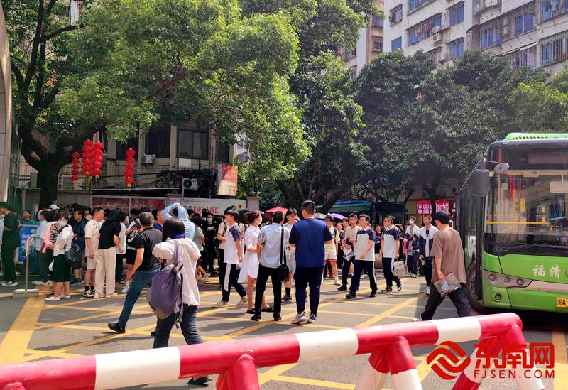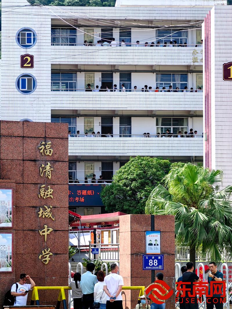 福清融城中学考点,考生陆续进入考点,前往各自考场。(东南网福清频道记者俞雅萍 摄)