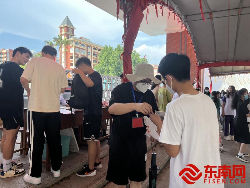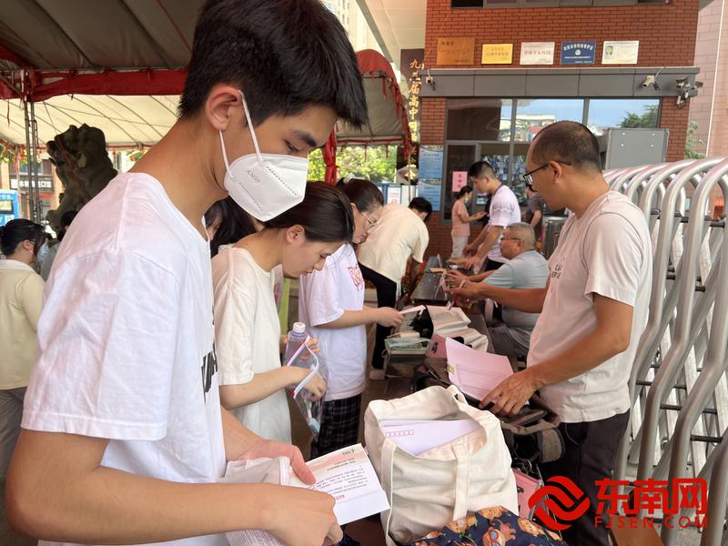 福清华侨中学考点,考生正在核对身份信息。(东南网福清频道记者黄盛青 摄)