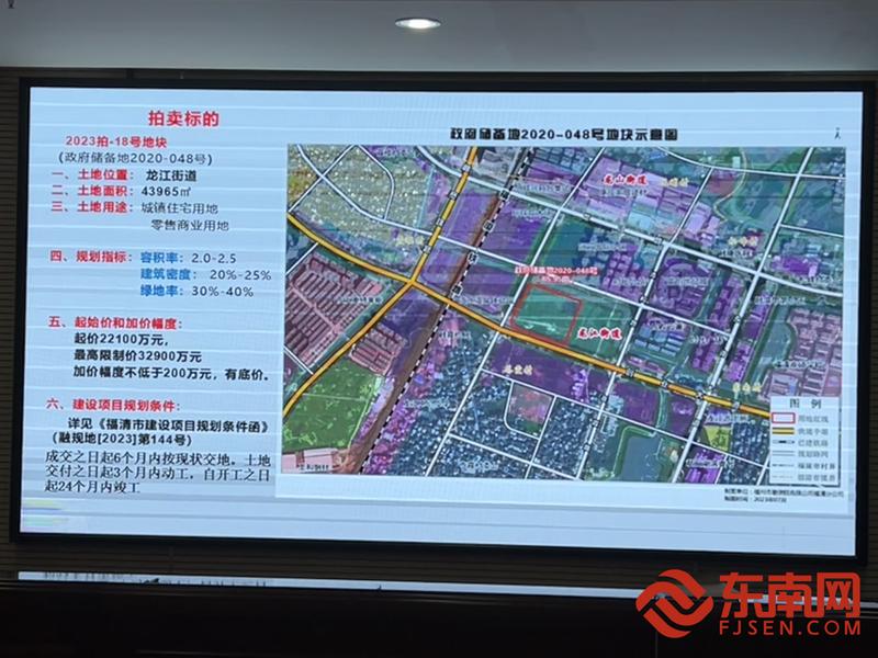 宗地2023拍-18号地块位于龙江街道,为住宅用地一城镇住宅用地、商服用地一零售商业用地;土地面积为43965㎡,容积率为2.0-2.5;拍卖起价为人民币2.21亿元,加价幅度不低于200万元,最高限制价为3.29亿元。此块宗地由莆田海悦建设有限公司以底价2.21亿元顺利拿下,成交楼面价约2011元/㎡,成交亩价为335.1万元/亩,溢价率为0%。据悉,该宗地后续将建设安置房并投入使用。