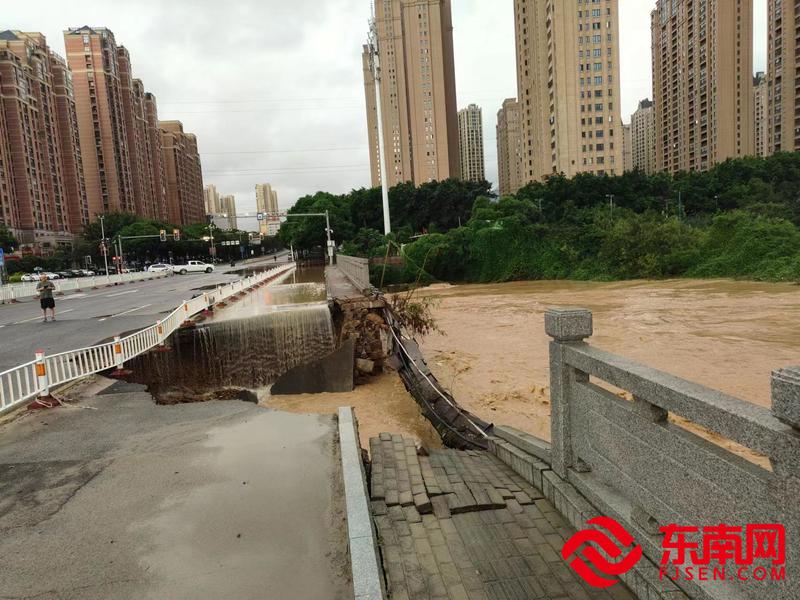 今日,受台风“海葵”带来的强降雨影响,福清市大北溪水量激增,位于清昌大道的古屯桥被冲毁一角。为保障安全,道路现已实行交通管制。