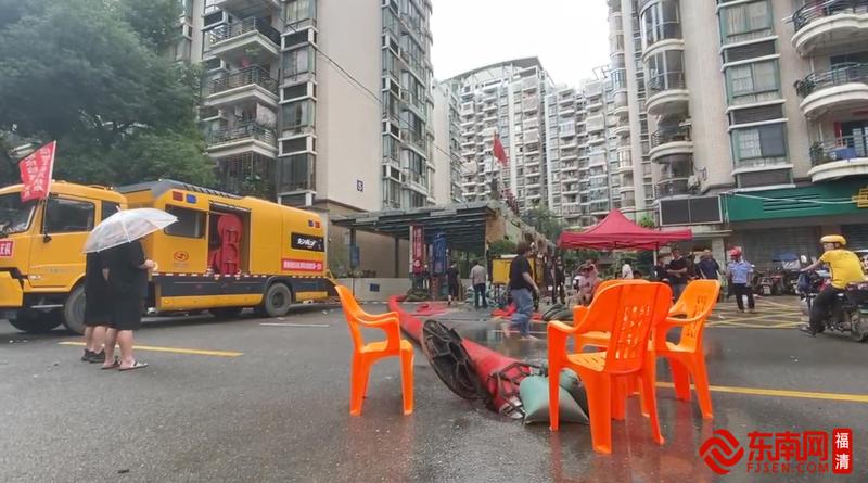 福清积极抢救被淹地下室(东南网福清频道记者 黎臻懋 摄)