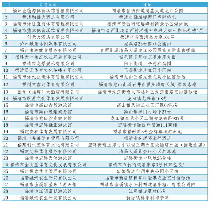 福清29家持证游泳场所